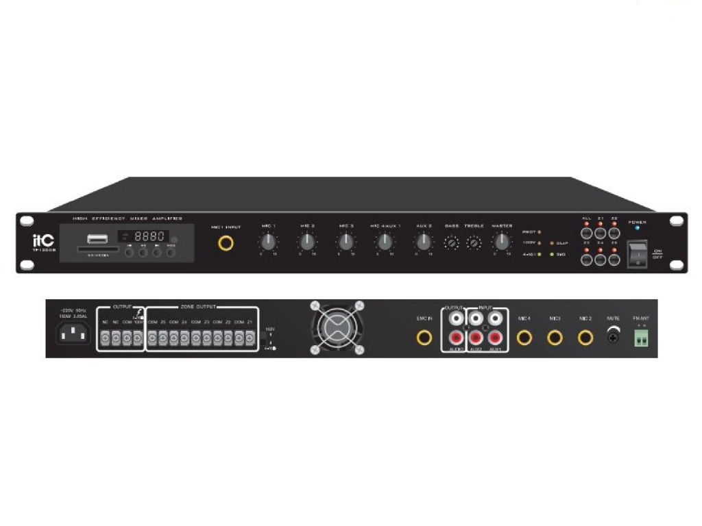 Mixer-amplificator clasa D cu o putere de 240 W. cu USB/SD/TUNER și Bluetooth.