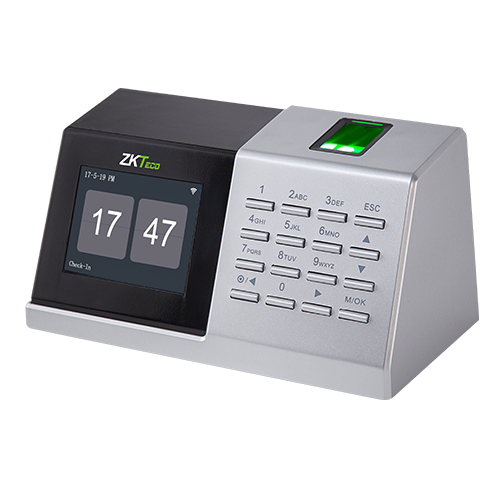 Terminalul desktop ZKTeco D2 ajută la automatizarea procesului de înregistrare a orelor de lucru ale angajaților folosind o amprentă sau o introducere a codului, versiunea desktop, înălțimea de instalare 80-140 cm