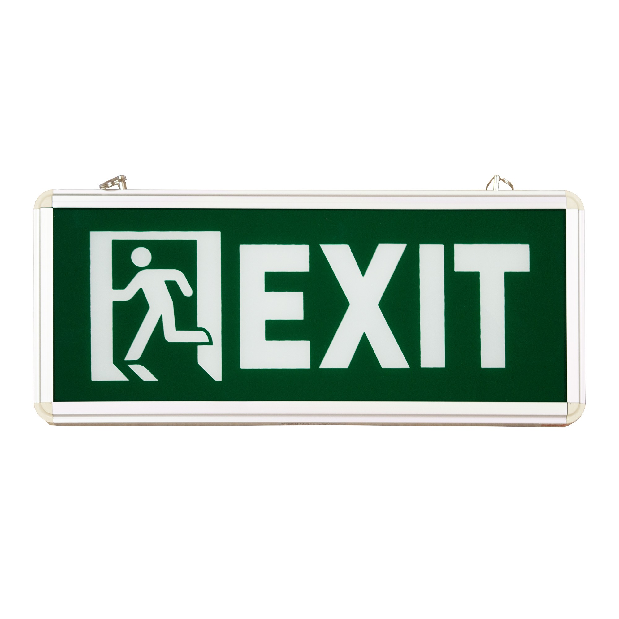 Panou informativ „EXIT” cu iluminare de fundal. Putere: 10-13,8V. Temperatura de funcționare: -40 până la +55°C. Dimensiune: 300x100x12 mm.