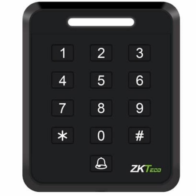 Controler autonom cu cititor ZK Teco încorporat, suportă carduri MF de 13,56 MHz, memorie pentru carduri 2000, iluminare de fundal, sonerie și indicator vizibil oferă feedback utilizatorului, interfețe pentru încuietoare electrică, buton de ieșire și sonerie, Tensiune de funcționare 9 până la 15 VDC. Culoarea carcasei: Negru. Temperatura de lucru -20°C ~ 60°C 103,5 * 86 * 19mm